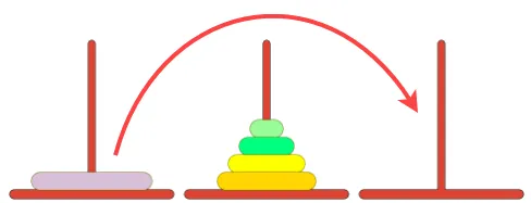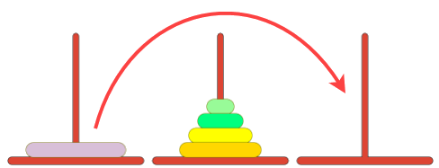 - After you’ve moved the last disk, the remaining disks from the auxiliary rod can be moved to the target rod.