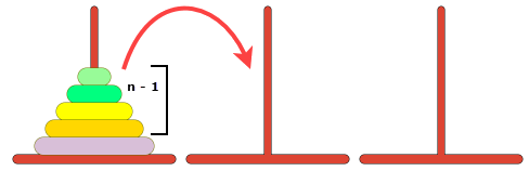 It’s important here to not think through steps how the disks are moved to the auxiliary rod but to assume that if they are already moved there, we can move the last disk and then move the remaining disks. So let’s write the code for this case: